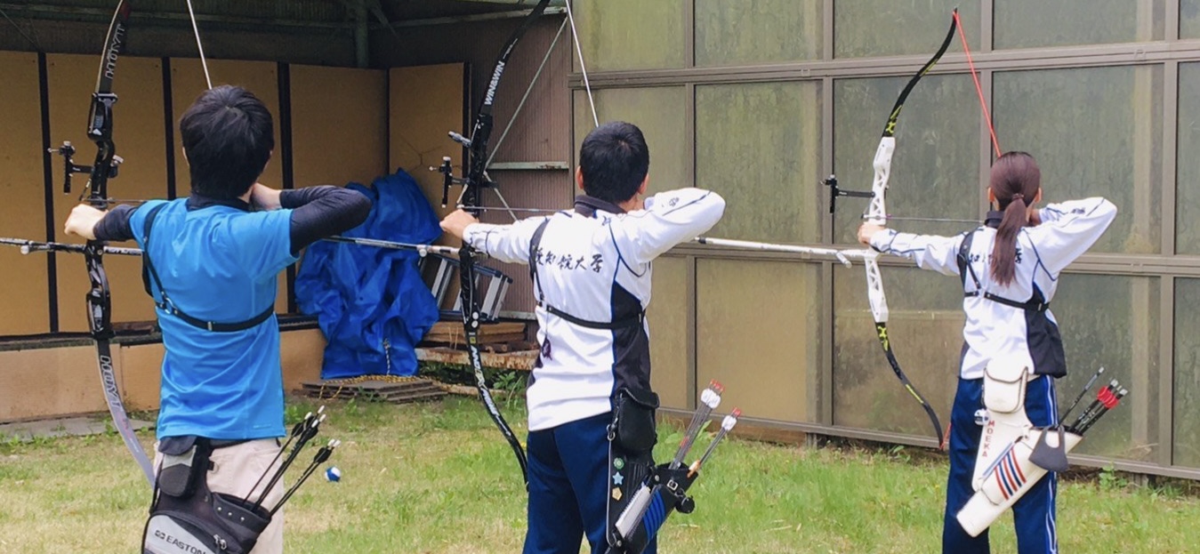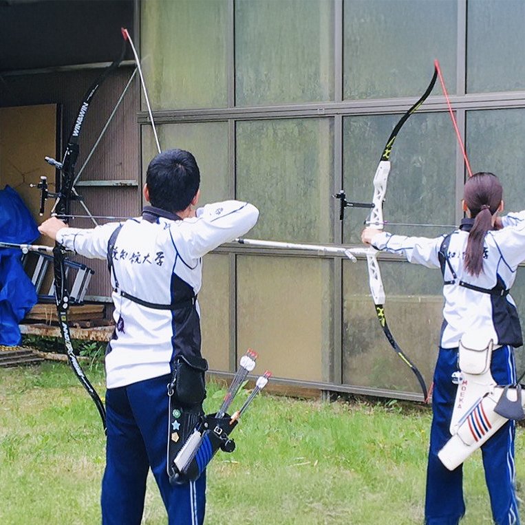 こんにちは!洋弓部です。洋弓部は毎週、アーチェリー場で練習しています。ほとんどの部員がアーチェリーを大学から始めるので、未経験・初心者は大歓迎です。また、週に1回の活動なので、バイトや資格の勉強などのクラブ活動と違うことにもチャレンジしたい人にもおすすめです!質問、興味のある方は、洋弓部のXまたはInstagramのアカウントで連絡してください。