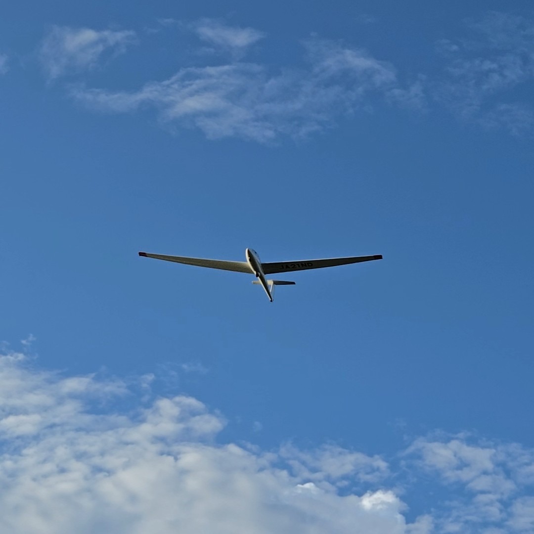 グライダーと呼ばれるエンジンの無い飛行機(滑空機)に搭乗し、風の力で空を飛びます。