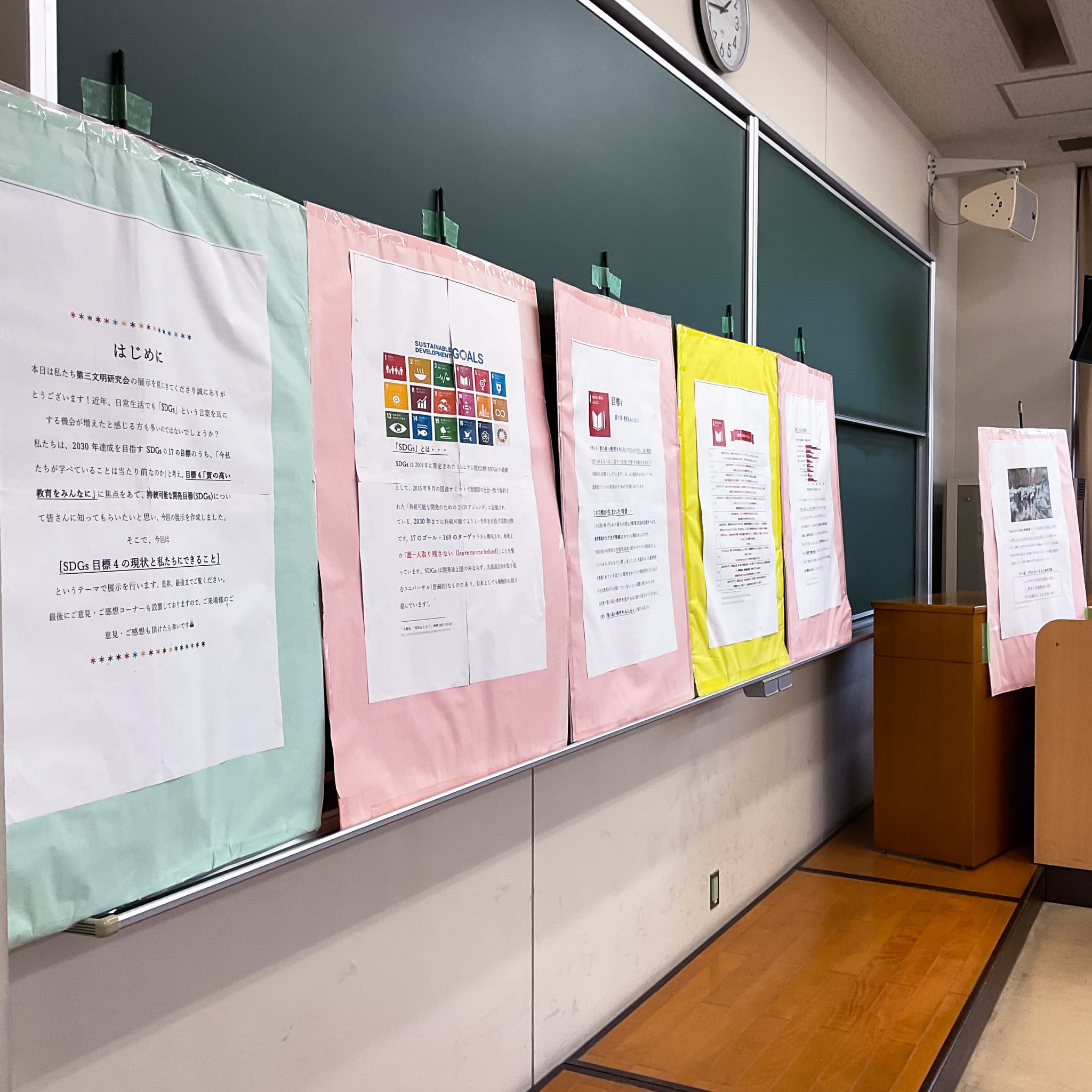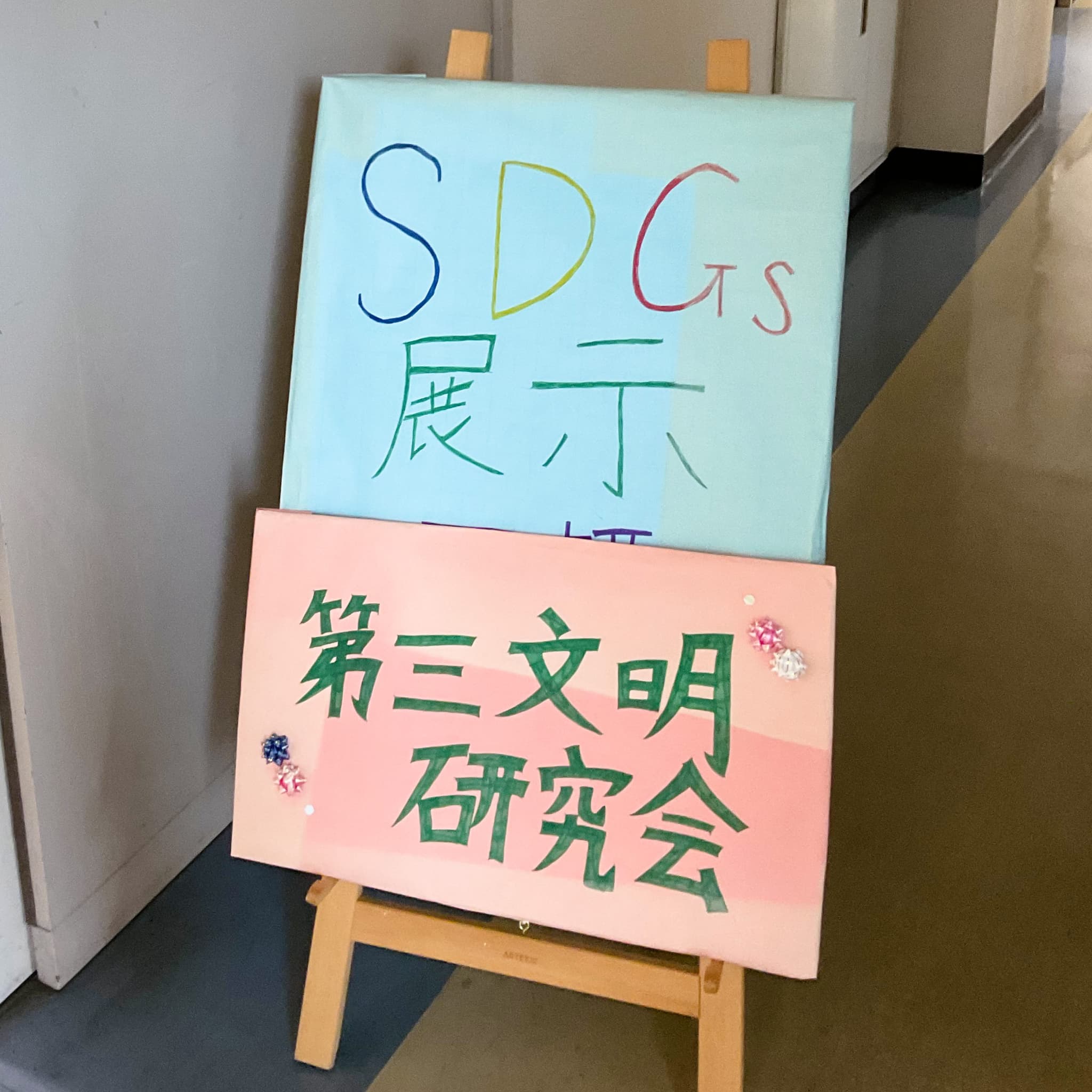 第三文明研究会では、SDGsについて学び、学祭で展示を行っています。
