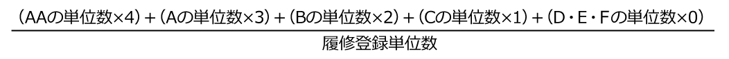 学期GPA:各学期において評価された成績評価を基に、次の式により算定する。