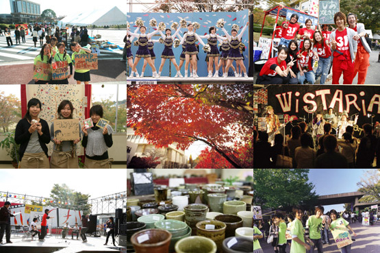 イ ベ ン ト | 「TKO」「ヒカリゴケ」によるお笑いライブ 模擬店、学術企画、スポーツ企画など |