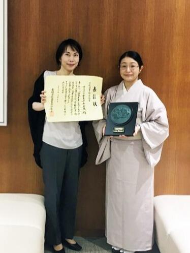 受賞式と関根 佳恵教授