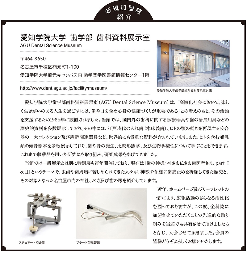 歯学部 歯科資料展示室の紹介が、「全国科学博物館協議会」から発行されている「全科協ニュース」に掲載されました。