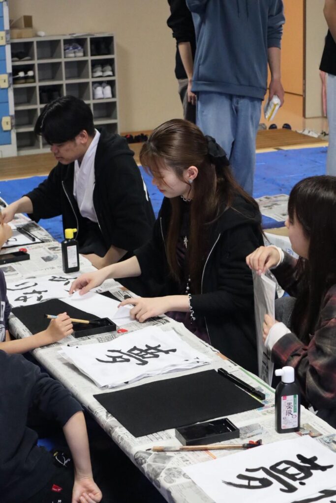 なお、書道教室は予定通り開催され、参加者は筆を手に真剣な表情で取り組み、本学学生と共に文化体験を楽しむ姿が見られました。