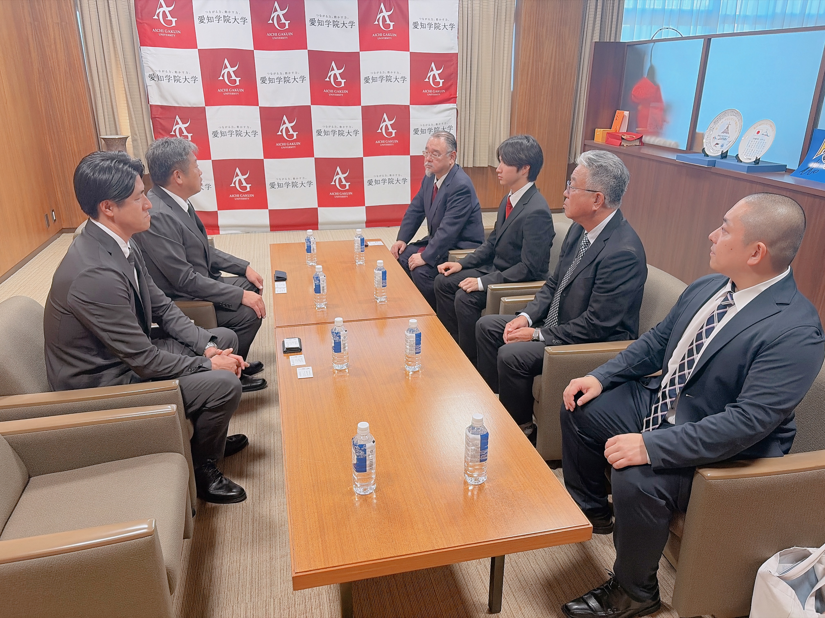 10月23日に行われたプロ野球ドラフト会議2025にて千葉ロッテマリーンズより育成3位指名を受けた杉山諒選手(心理学部心理学科4年生)が球団より指名挨拶を受けました。