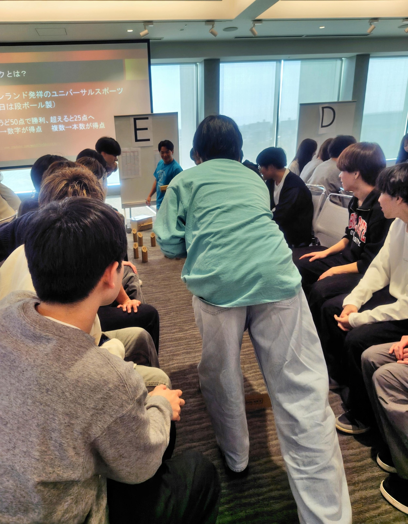 ユニバーサルスポーツ(モルック)とスタンプラリーを実施し、新入生同士の交流を深め、新しい仲間と出会えた有意義な時間となりました。