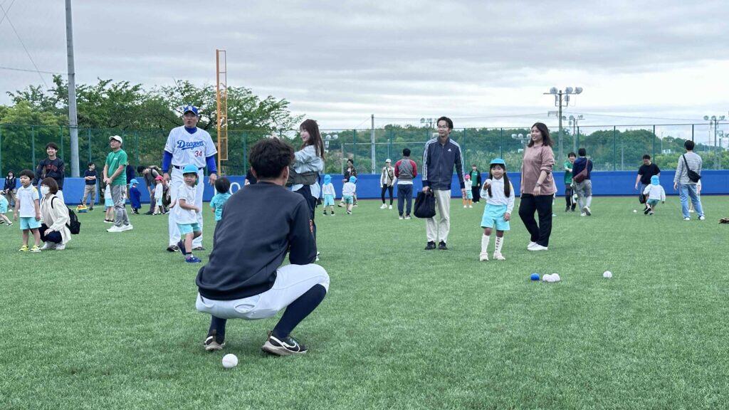 元プロ野球選手と一緒に園児に野球を教える教室に参加するという貴重な体験を喜んでおりました。