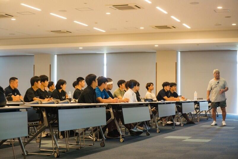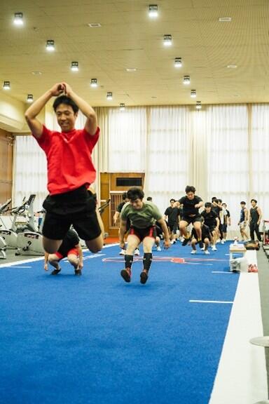 合宿の内容としては、午前に心肺機能の向上を目的とした高強度の有酸素運動を実施、本学柔道部との競技練習を行いました。午後からは、本学の健康科学部の教授(石田直章客員教授、伊藤倫之教授、早瀬須美子教授)による競技力向上のための講義を実施、その後スポーツセンターのフィットネススタジオ内でパラ・パワーリフティング日本代表の日野雄貴選手の指導による競技力向上のためのウェイトトレーニングを実施いたしました。近代のスポーツにおけるウェイトトレーニングの重要性を学ぶことができました。最終日には、運動部に適した職種の企業説明会が行われました。競技に専念するだけでなく、将来の進路を見据えた可能性を広げる合宿となりました。
