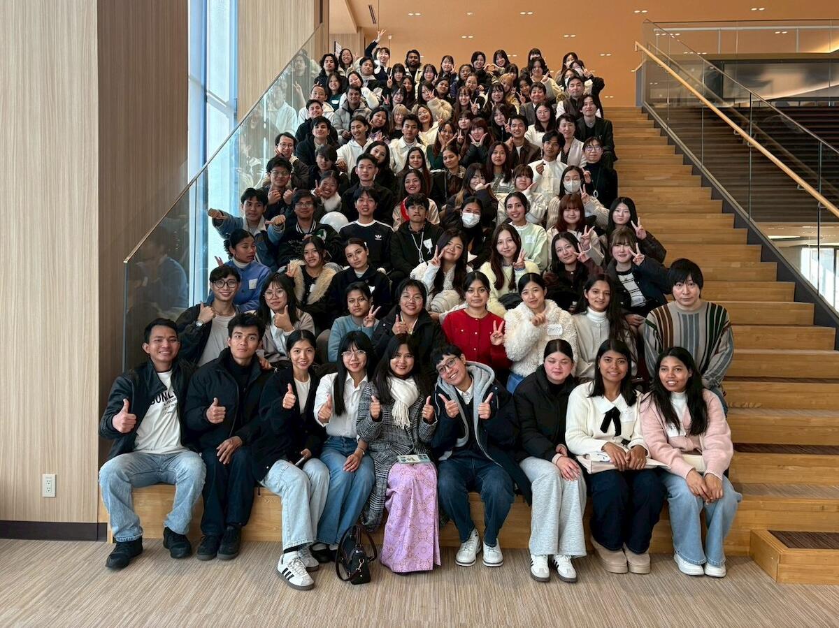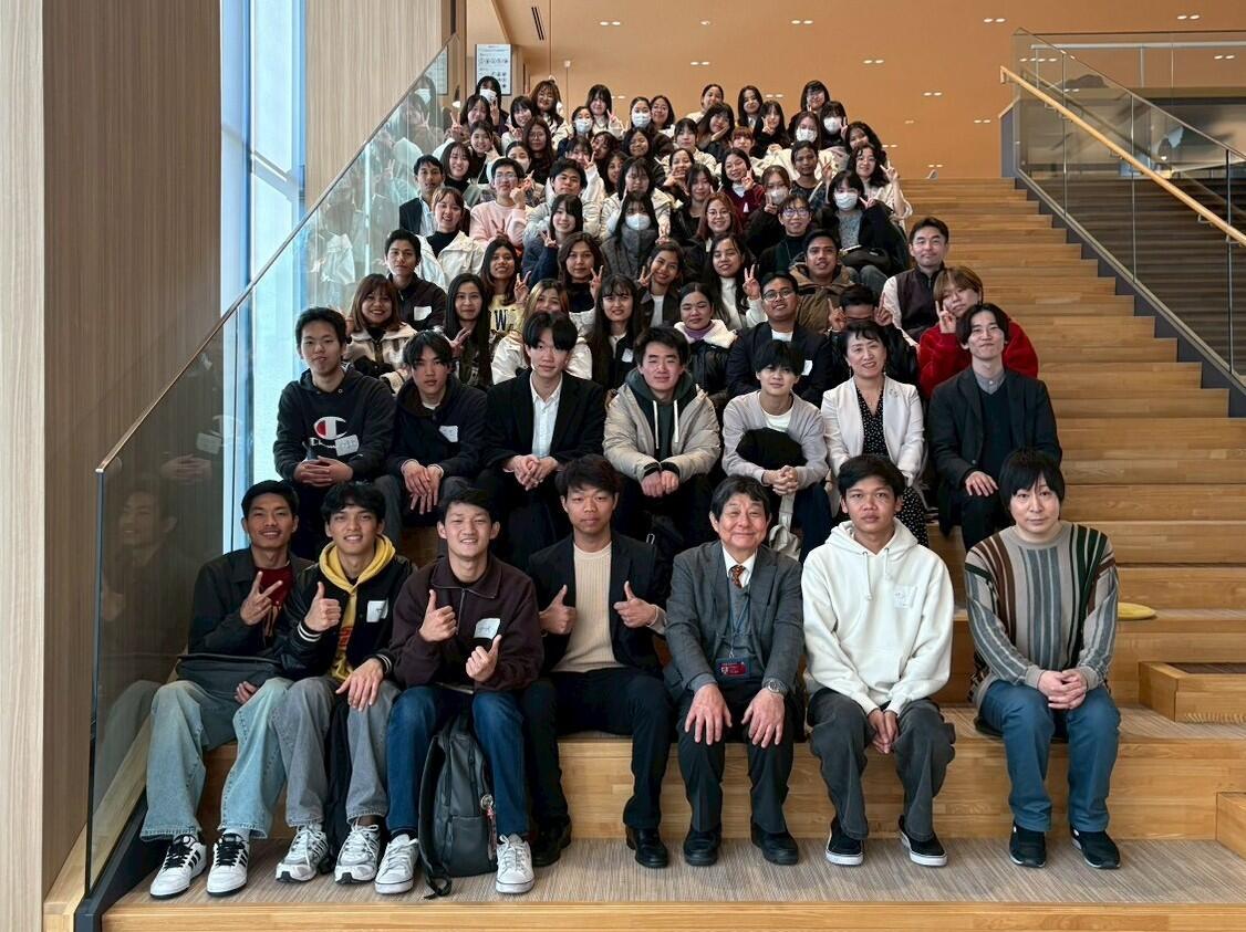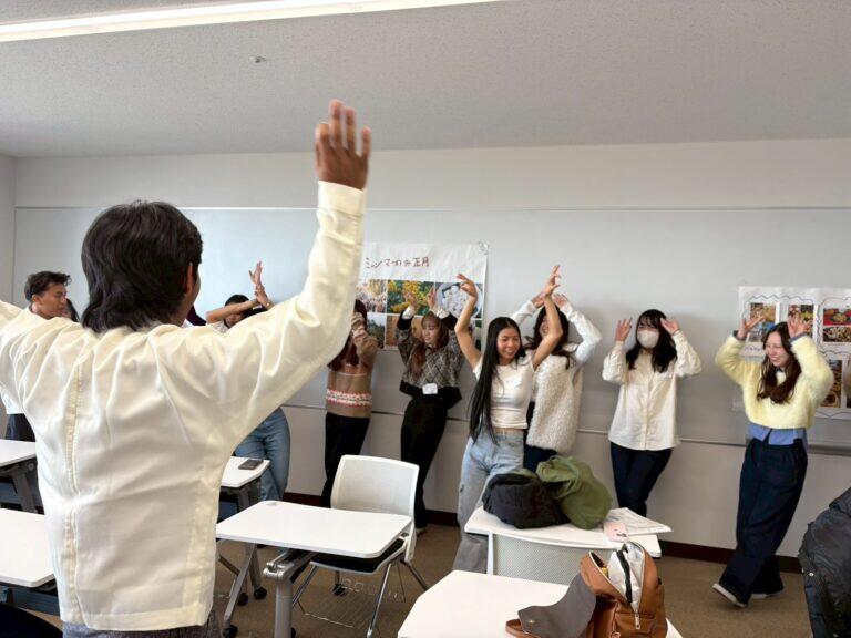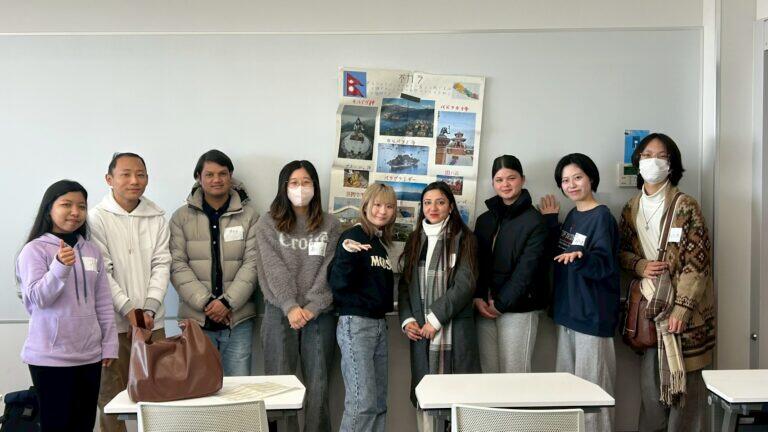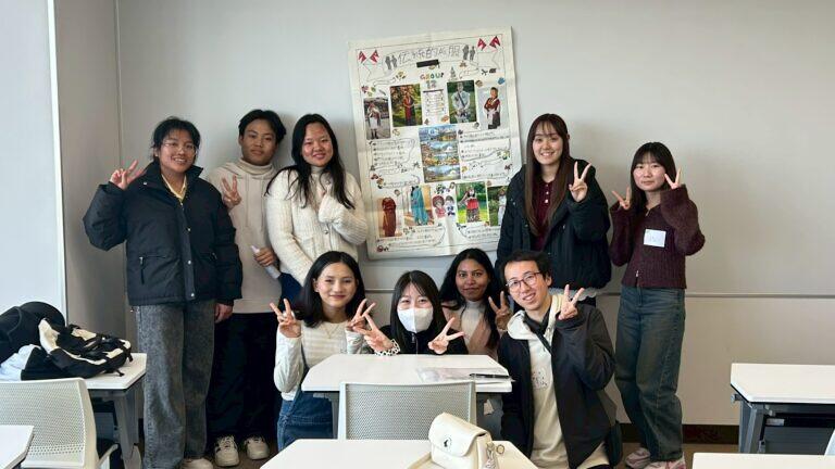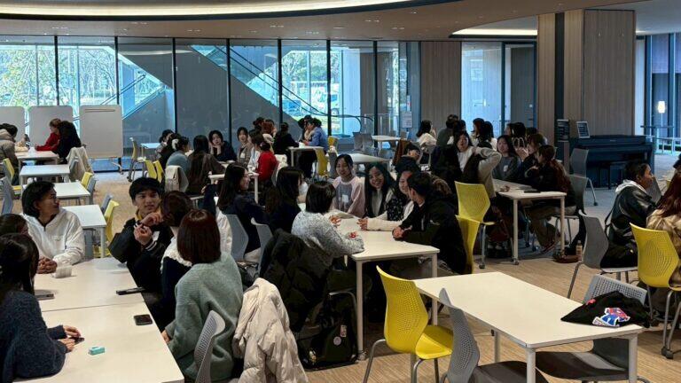 2026年2月9日に、名城公園キャンパスアリスタワーを会場として、本学日本語教師養成課程で学ぶ学生44名、椙山女学園大学日本語教員資格課程で学ぶ学生23名、中部学院大学留学生別科で学ぶ留学生89名、総勢156名での交流会を実施しました。