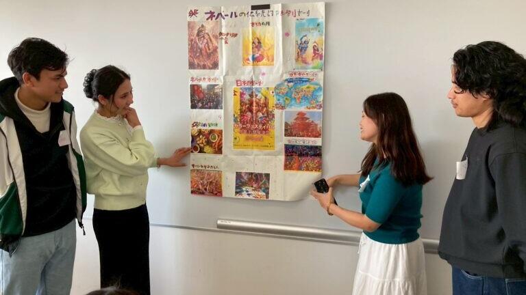 続く第2部では、中部学院大学の留学生の皆さんが、工夫を凝らして作ったポスターを用いて、それぞれの母国の文化、芸術、社会の仕組みについて、プレゼンをしてくださいました。