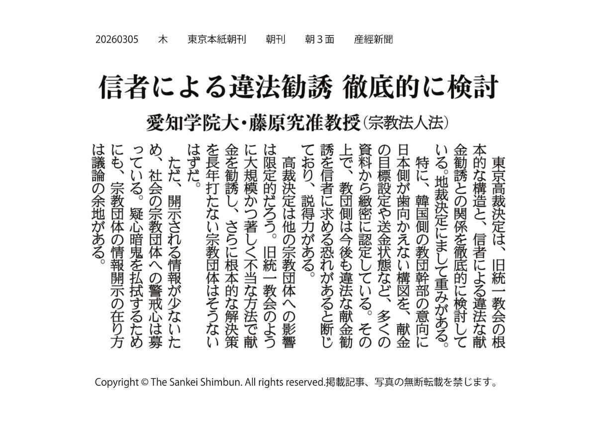 「産経新聞」「朝日新聞」「岐阜新聞」に、法学部 藤原 究准教授のコメントが掲載されました。