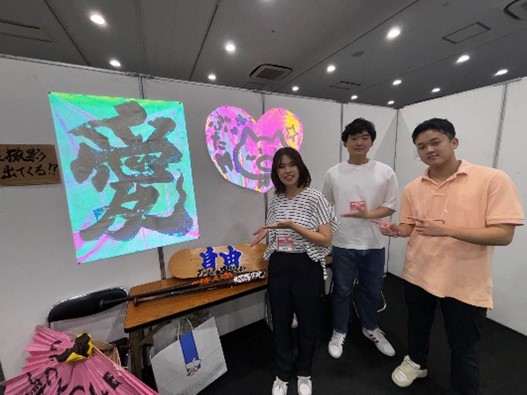 会場では、企業や大学がブースを設け、SDGsについての取り組みを紹介しました。本学もブースを設け、4つの学生団体(愛学祭実行委員会・国際子ども支援ボランティア「SPLEA」・書道部・Mdi Spot学生ボランティア)によるSDGsについての取り組みを紹介しました。内容は、「ごみゼロの大学祭」「カンボジアへの募金活動や教育問題」「廃材を活用したUP CYCLE書道&オーロラリフレト書道」「大学SDGs設備の紹介及びペットボトルキャップ回収と意識調査」をテーマにブース内で学生が説明をしました。ブースでは、学生が来場者に対して展示品の説明をしたり、自身の活動をPRしました。本学のSDGsについての取り組みを知っていただく貴重な機会となりました。
